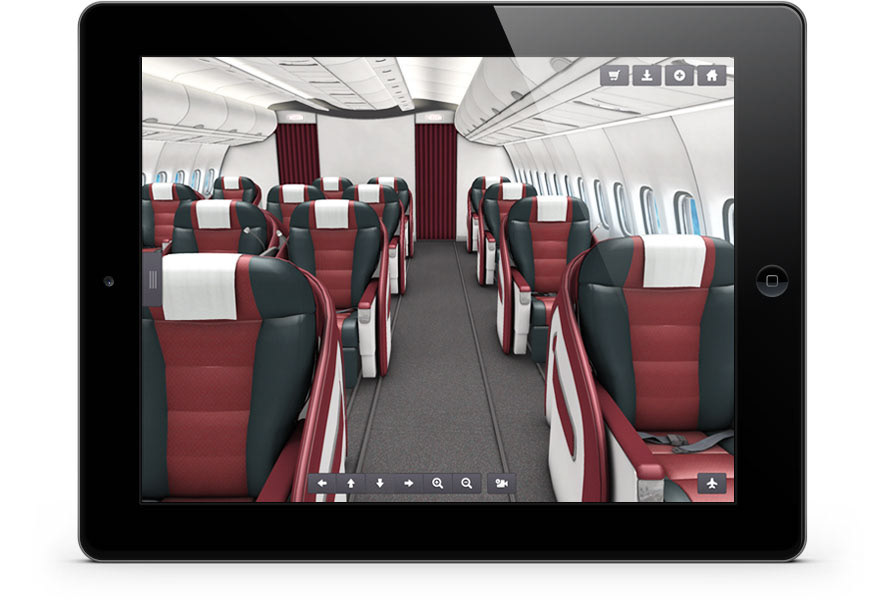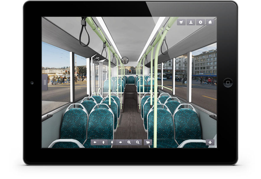The mobile virtual reality bus & aircraft app makes it possible to configure and explore in realtime Lantal's interior concepts.